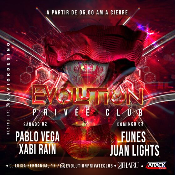 DESCRIPCIÓN Fecha2024-03-02HoraDesde las 06:00 a 12:00.LugarEvolution Privee CLUB - MadridDirecciónCalle Luisa Fernanda 17, 28008 Madrid CARTEL