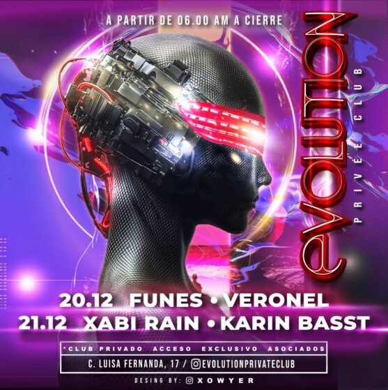 DESCRIPCIÓN Fecha2025-12-21HoraDesde las 06:00 a 11:00.LugarEvolution Privee CLUB - MadridDirecciónCalle Luisa Fernanda 17, 28008 Madrid CARTEL