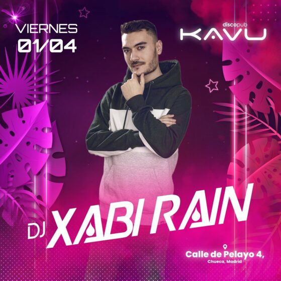 DESCRIPCIÓN Fecha2022-04-01HoraDesde las 23:00 a 03:30.LugarKavu - MadridDirecciónCalle Pelayo 4, 28004 Madrid CARTEL