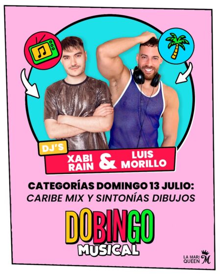 DESCRIPCIÓN Fecha2025-07-13HoraPinchando desde las 21:00 a 00:00.LugarMari Queen - Madrid (Dobingo tardeo)DirecciónCalle Barbieri 10, Madrid, Spain 28004 CARTEL