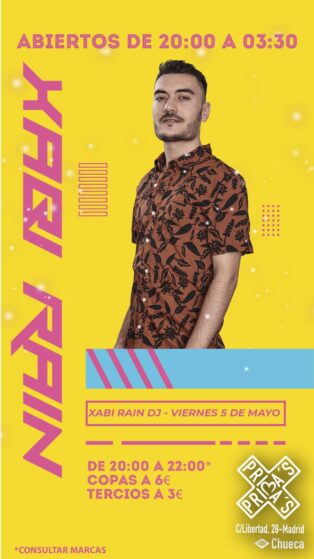 DESCRIPCIÓN Fecha2023-05-05HoraDesde las 22:30 a 03:30.LugarPrimas Bar - MadridDirecciónCalle Libertad 28, 28004 Madrid CARTEL